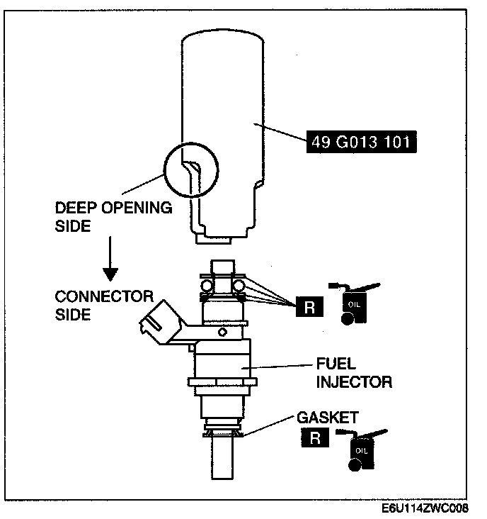 NOTE: Depending on the driving conditions, carbon may accumulate on the inserted part of the fuel injector, causing the fuel injector to stick. Remove the fuel injector using the following procedure.