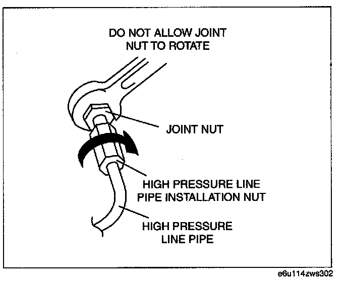 3. Tighten the high pressure line pipe installation nut using the following procedures.