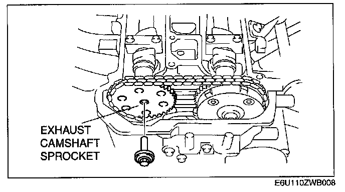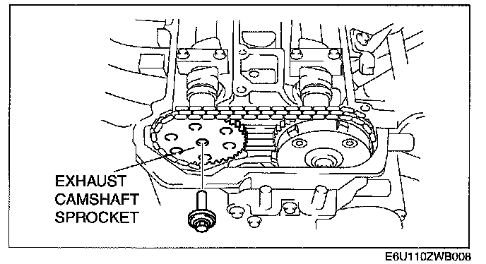 21. Remove the installation bolt and remove the exhaust camshaft sprocket.
