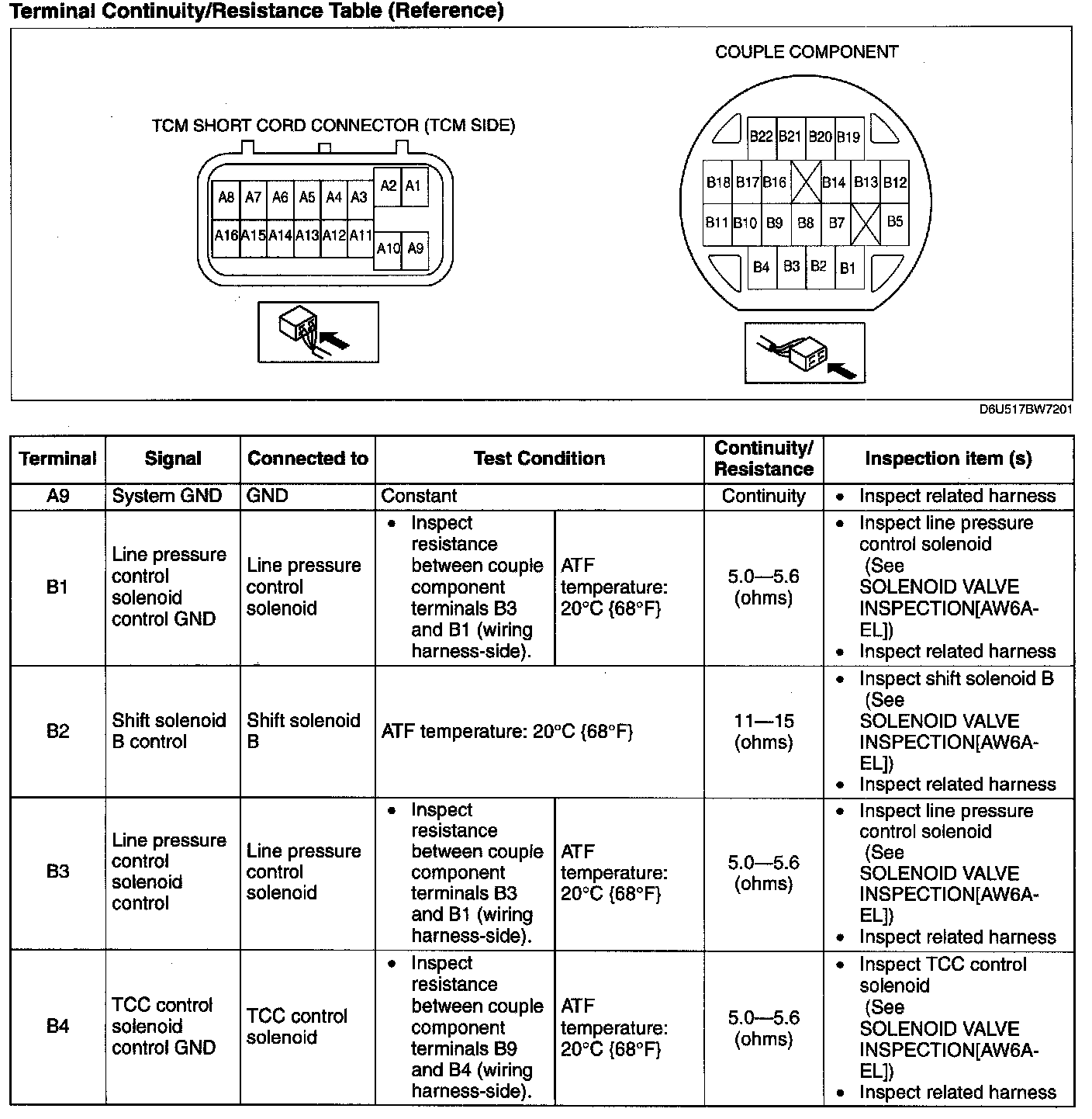 - If the system does not work properly even though the parts or related wiring harnesses do not have any malfunction, replace the TCM.