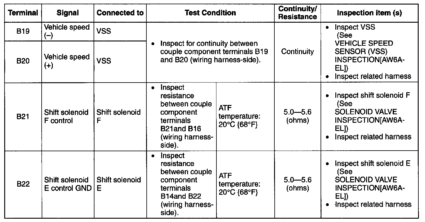 4. Verify that continuity or resistance at terminal is as indicated in the terminal continuity/resistance table.