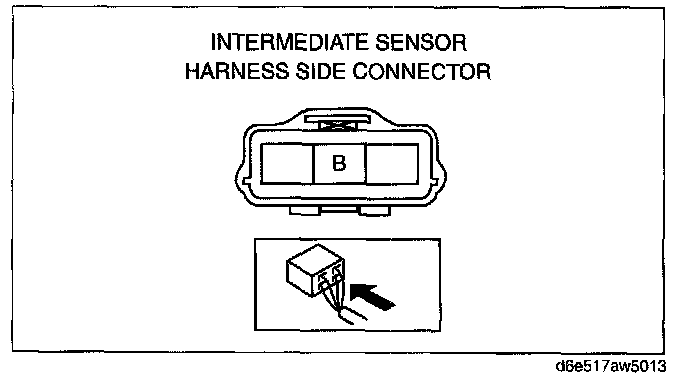 3. Measure voltage at intermediate sensor connector terminal B (wiring harness side).