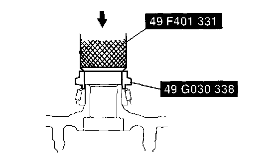 10. Tap the selected adjusting shim between the spacer and the bearing race with a plastic hammer as shown in the figure.