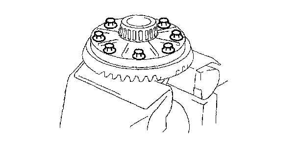 ^ The differential gear and ring gear could be damaged if the ring gear is installed with old threadlocking compound remaining on the bolt threads. Before installing the ring gear, completely remove the old thread-locking compound from the bolt threads.