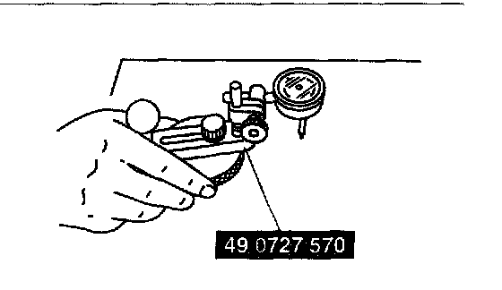 12. Place the dial indicator so that the measuring probe contacts the top surface of one of the ring gear teeth perpendicularly.