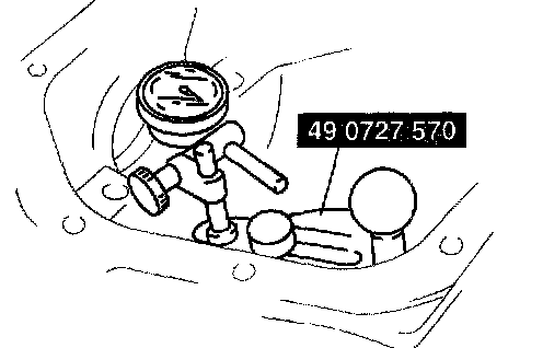8. Place the measuring probe of the dial indicator so that it contacts the place where the side bearing is installed in the carrier. Then measure the left and right side of the lower position.