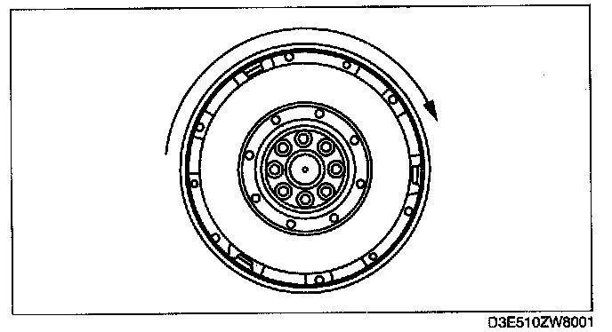 ^ Inspect the runout of the surface that contacts the clutch disc with the flywheel installed to the crankshaft.