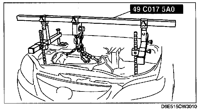 4. Adjust the SST (49 C017 5A0) so that the engine is located at the specified position.