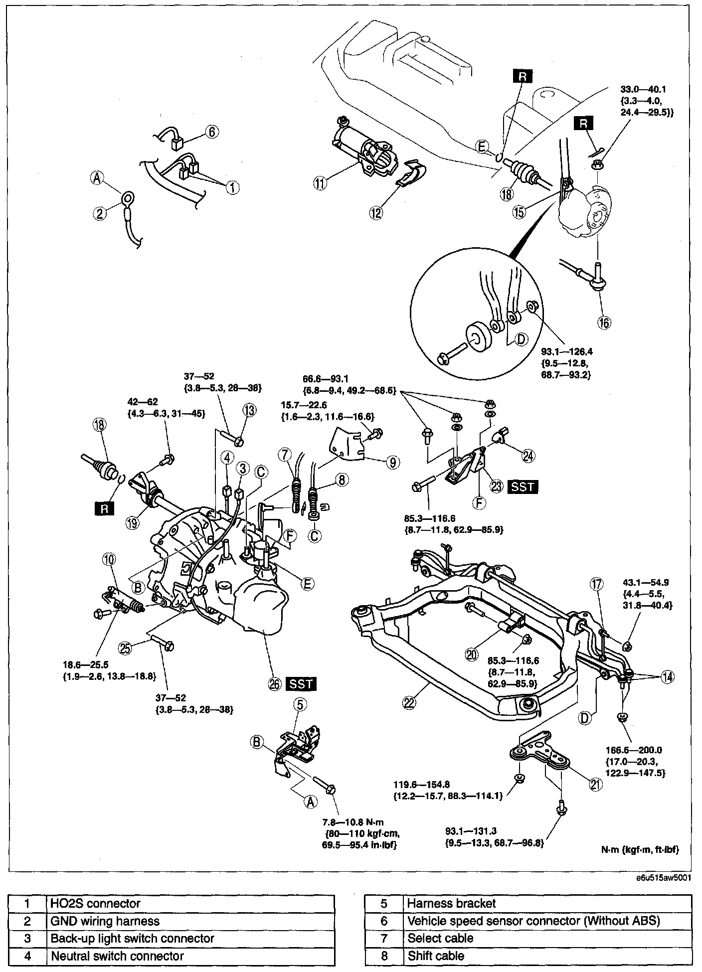 Tightening torque E: 85.3 - 116.6 N-m (8.7 - 11.8 kgf-m, 62.9 - 85.9 ft-lbf)