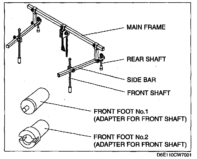 (3) Install the left/right front shaft of the SST with front foot No.2 to the bolt as shown in the figure.