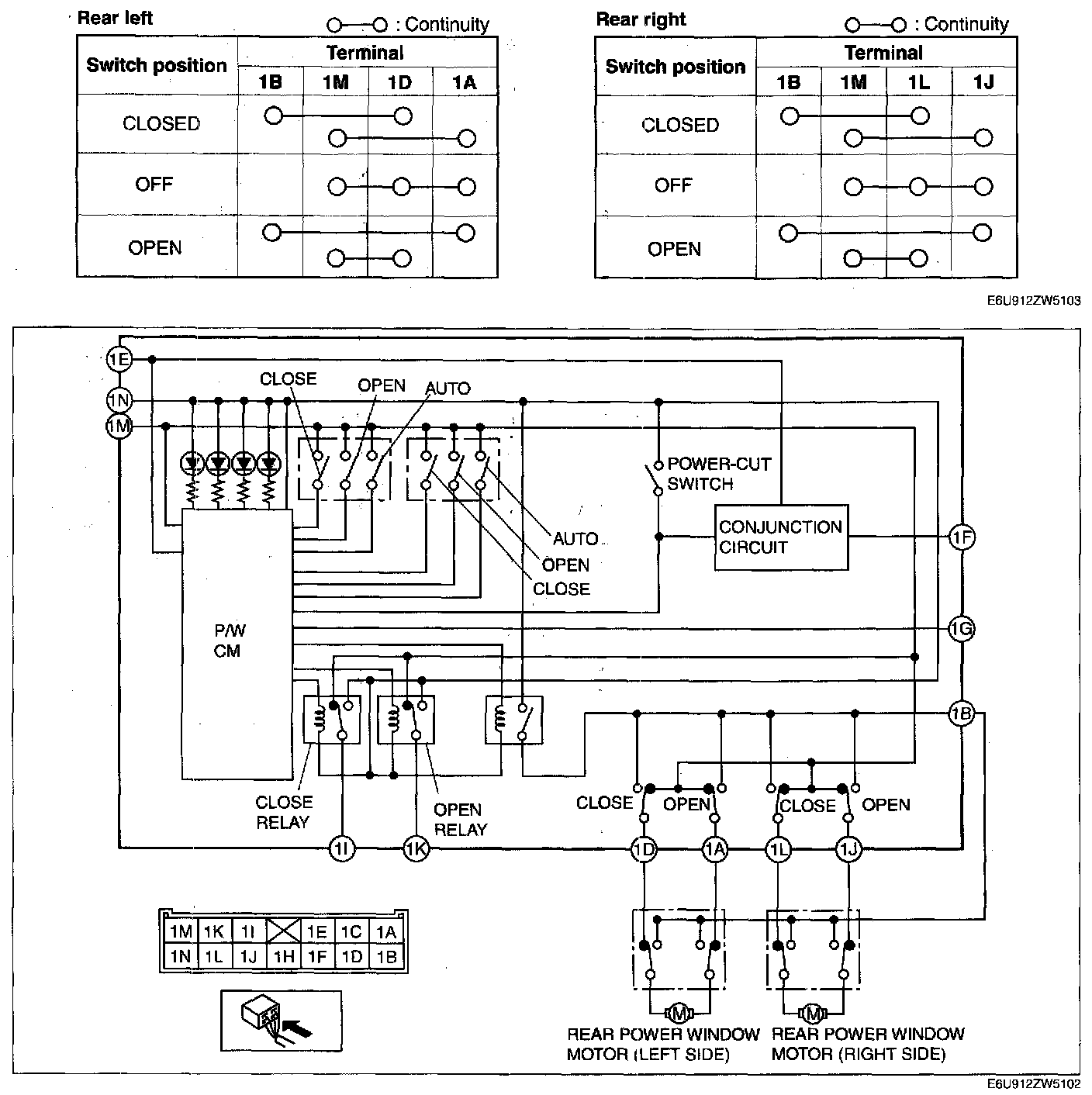 POWER WINDOW MAIN SWITCH INSPECTIONNOTE: Before proceeding with diagnosis of malfunctioning power windows, ensure the POWER WINDOW INITIALIZATION PROCEDURE has been performed.