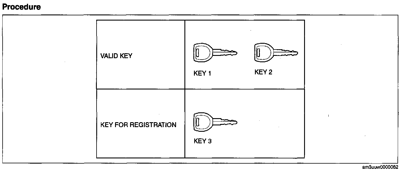 - When replacing only the PCM, start from Step 2. Also, when key 1 is indicated within the procedure, any valid key can be used.