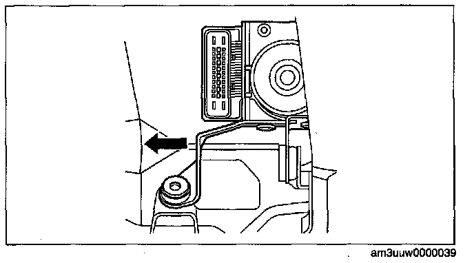 1. As shown in the figure, move the bracket in the direction of the arrow and remove the ABS HU/ CM component and bracket from the body.