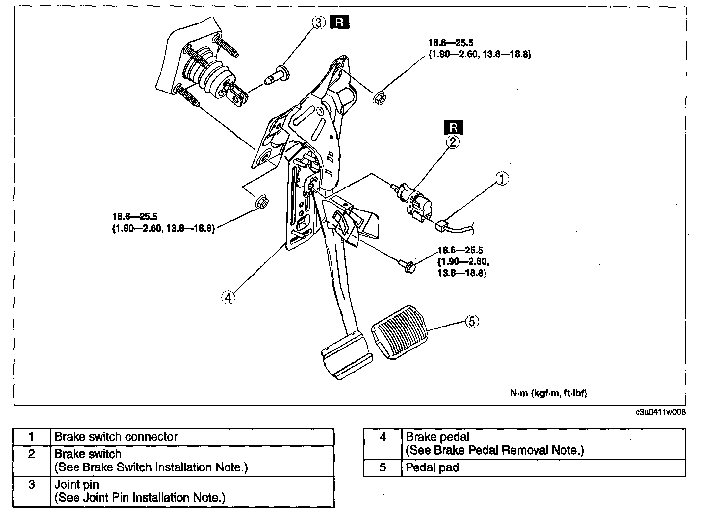 BRAKE PEDAL REMOVAL/INSTALLATIONCaution: