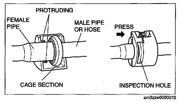 NOTE: The male pipe or hose can be disconnected easily from the female pipe by pulling from the male pipe or hose while maintaining the pressure of the protruding part of the SST.