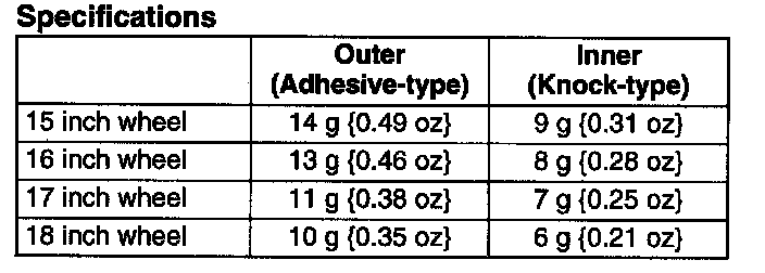 ^ One balance weight must not exceed 60 g (2.12 oz), and a total of tow balance weights must not exceed 100 g (3.53 oz).