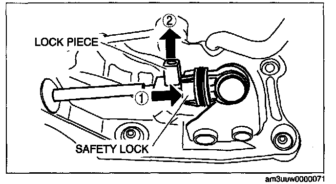 2. Push the safety lock, then unlock the lock piece of the select cable in the order shown in the figure.