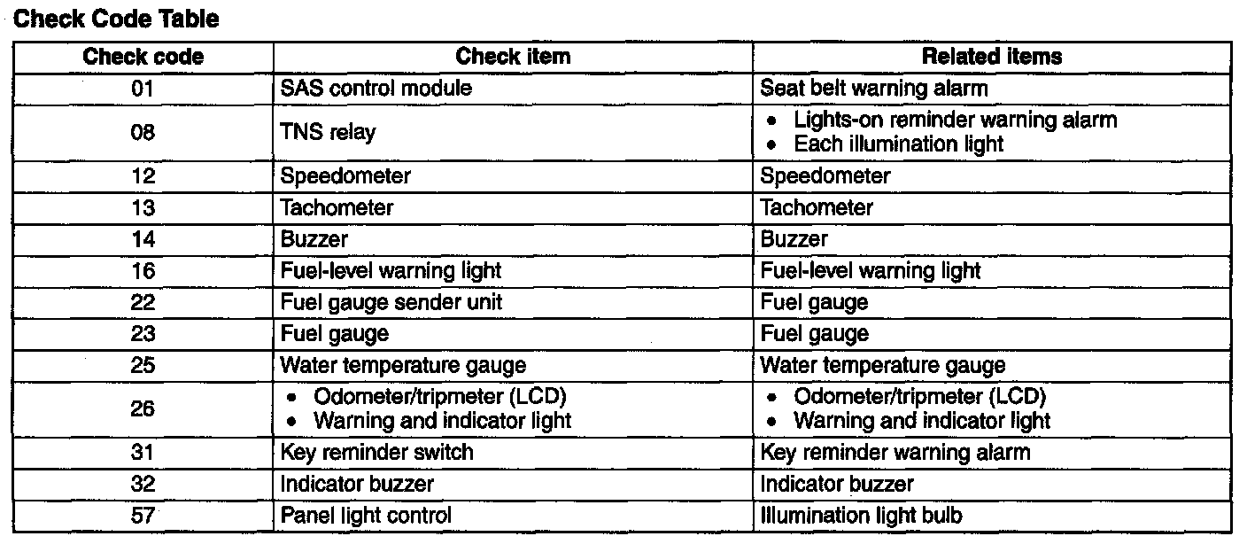 Check Code Table [Instrument Cluster]
