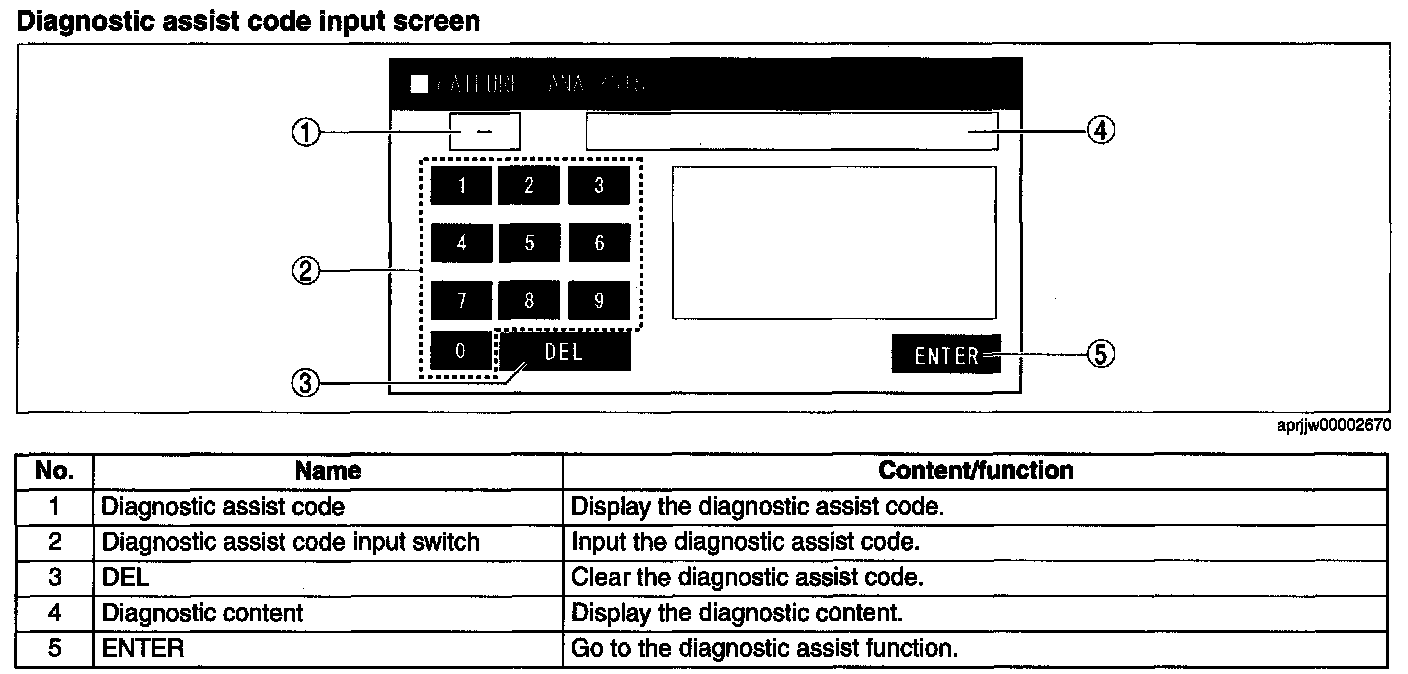 4. Press the "Diagnostic assist code input switch", and input the diagnostic assist code.