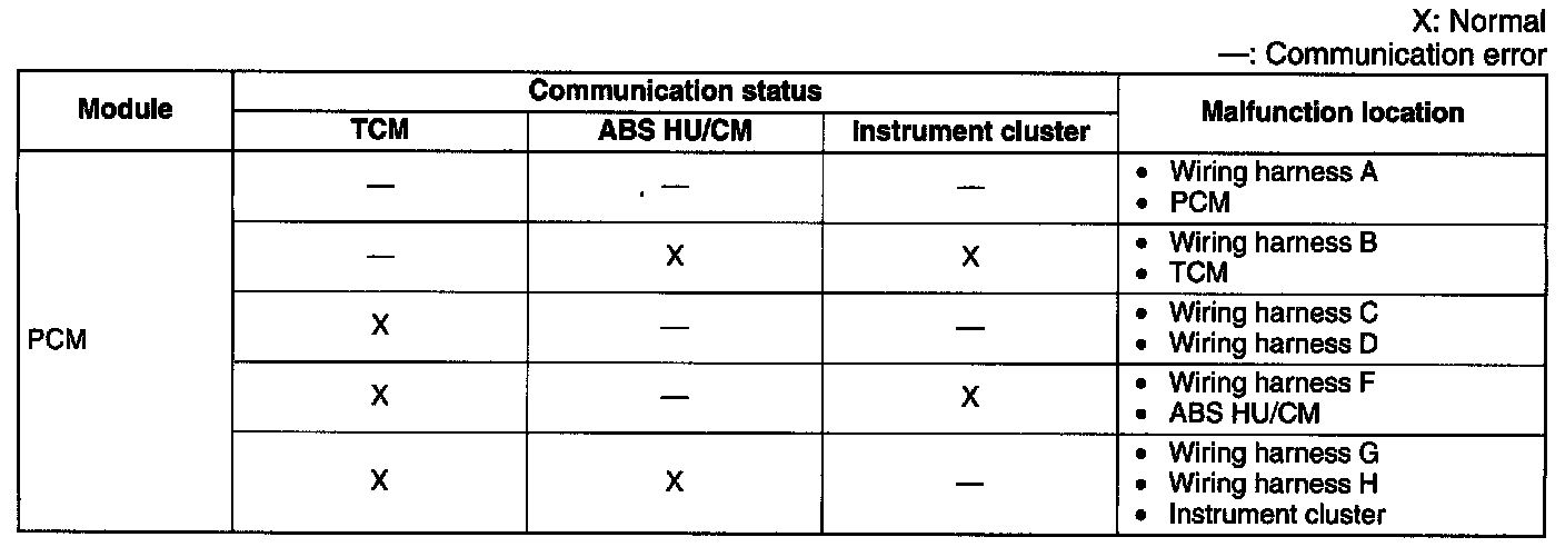 2. Referring to the following table, determine the malfunctioning part of the CAN system.