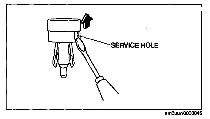 1. Remove fastener B by inserting a small flathead screwdriver into the service hole as shown in the figure.