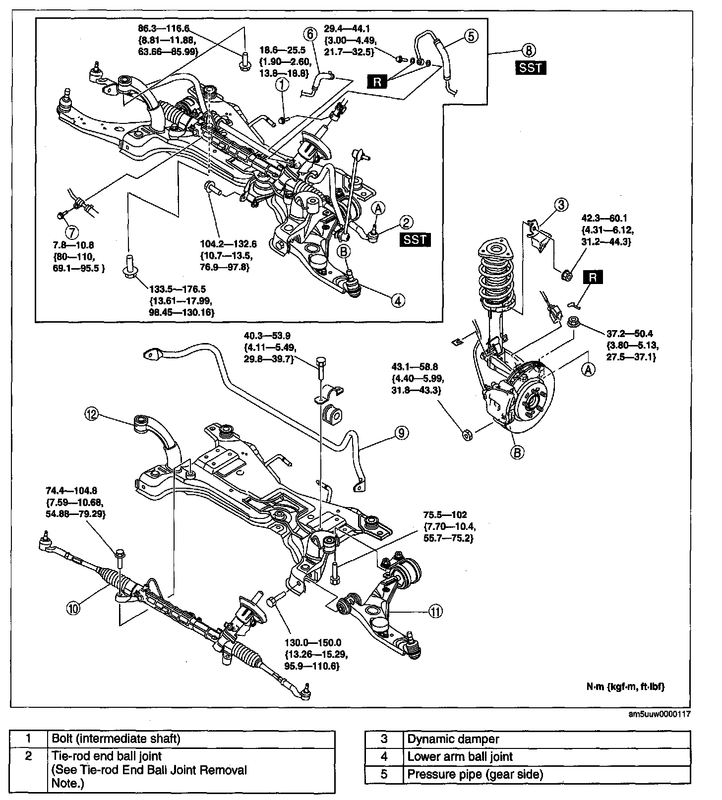 Front Crossmember Component, Steering Gear and Linkage Component Removal Note