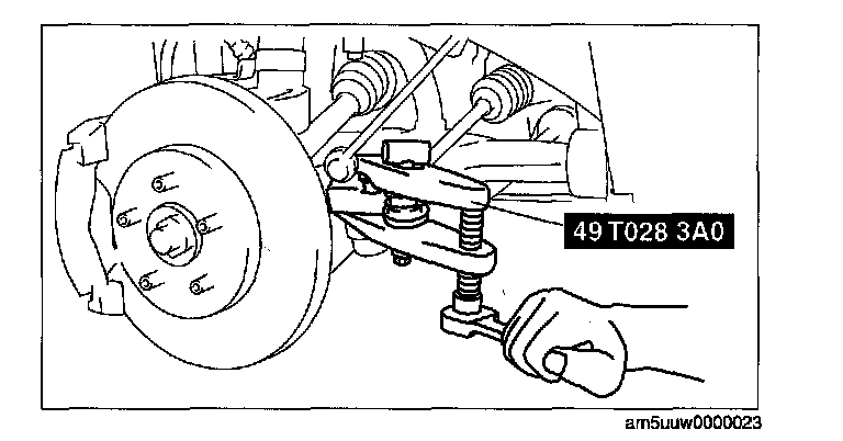 2. Detach the tie-rod end from the steering knuckle using the SST.