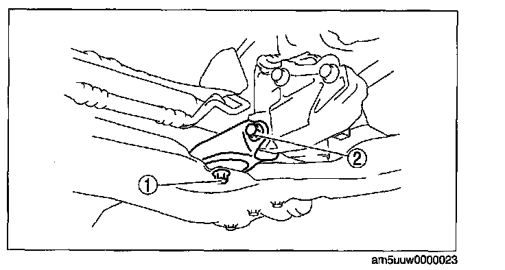 ^ When installing the No.1 engine mount, tighten the bolts in order shown in the figure to prevent abnormal noise and vibration after assembly.