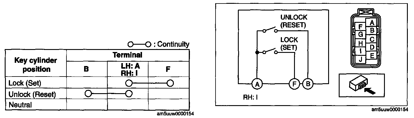 FRONT DOOR KEY CYLINDER SWITCH INSPECTION