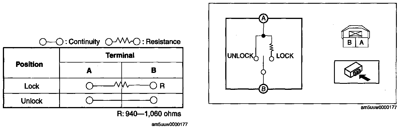 Inspect for continuity between the door lock switch terminals using an ohmmeter.