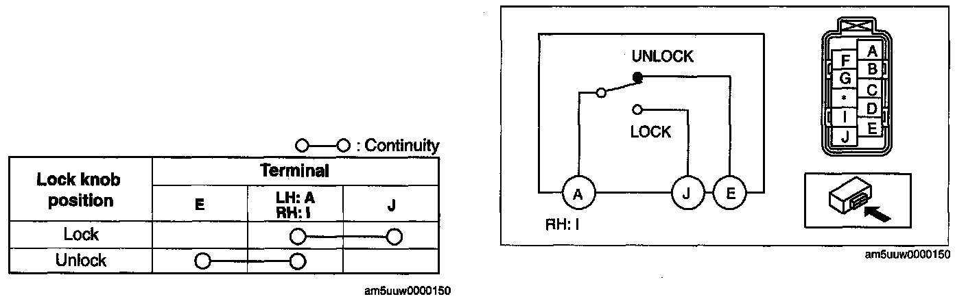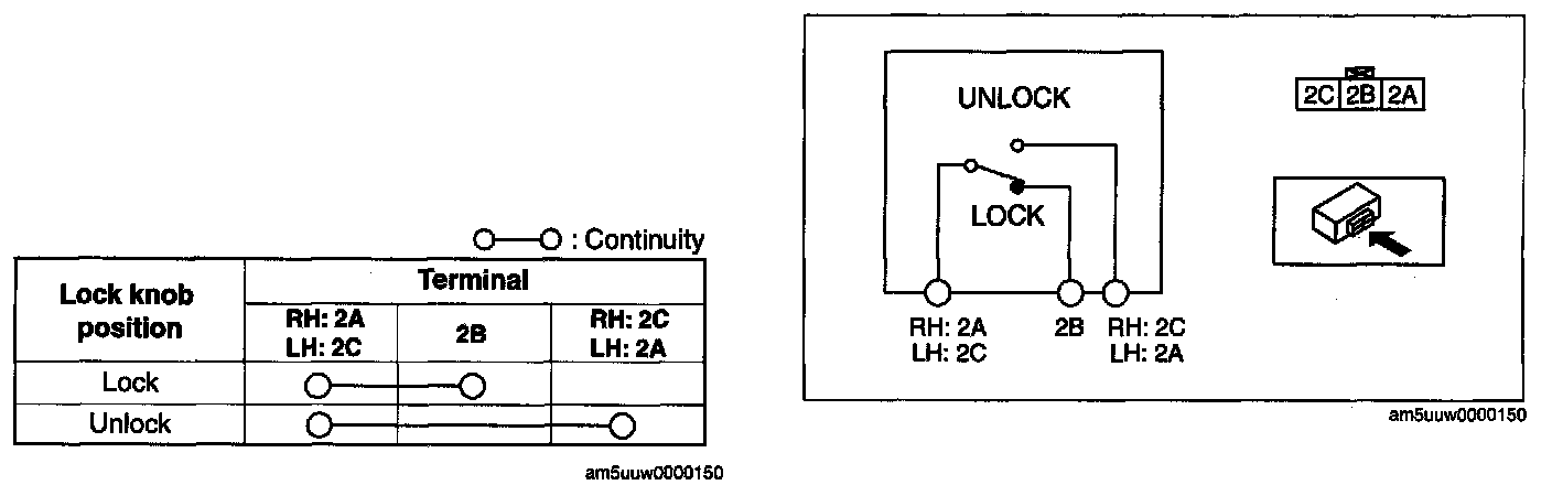 1. Inspect for continuity between the door lock-link switch terminals.