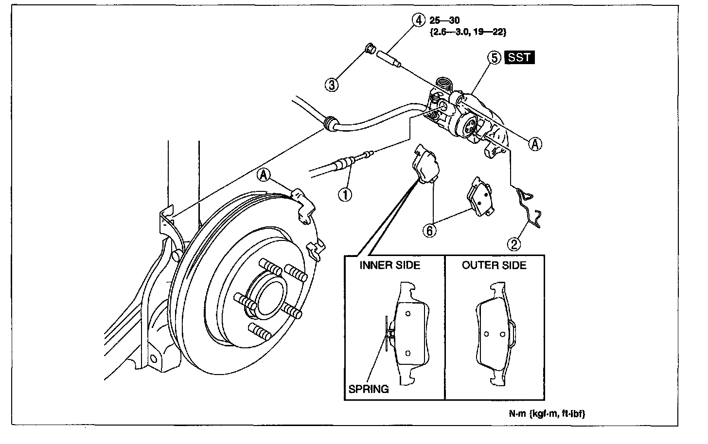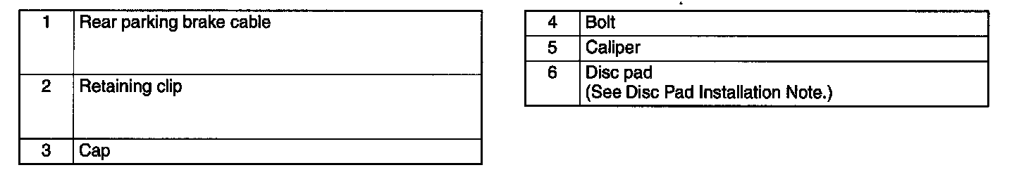 DISC PAD (REAR) REPLACEMENT1. Remove in the order indicated in the table.