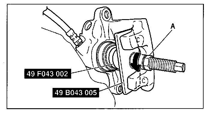4. Rotate part A on the SST in the direction of the arrow and secure the SST to the caliper.