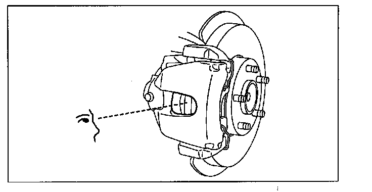 Disc Pad Thickness Inspection1. Jack up the front of the vehicle and support it with safety stands.