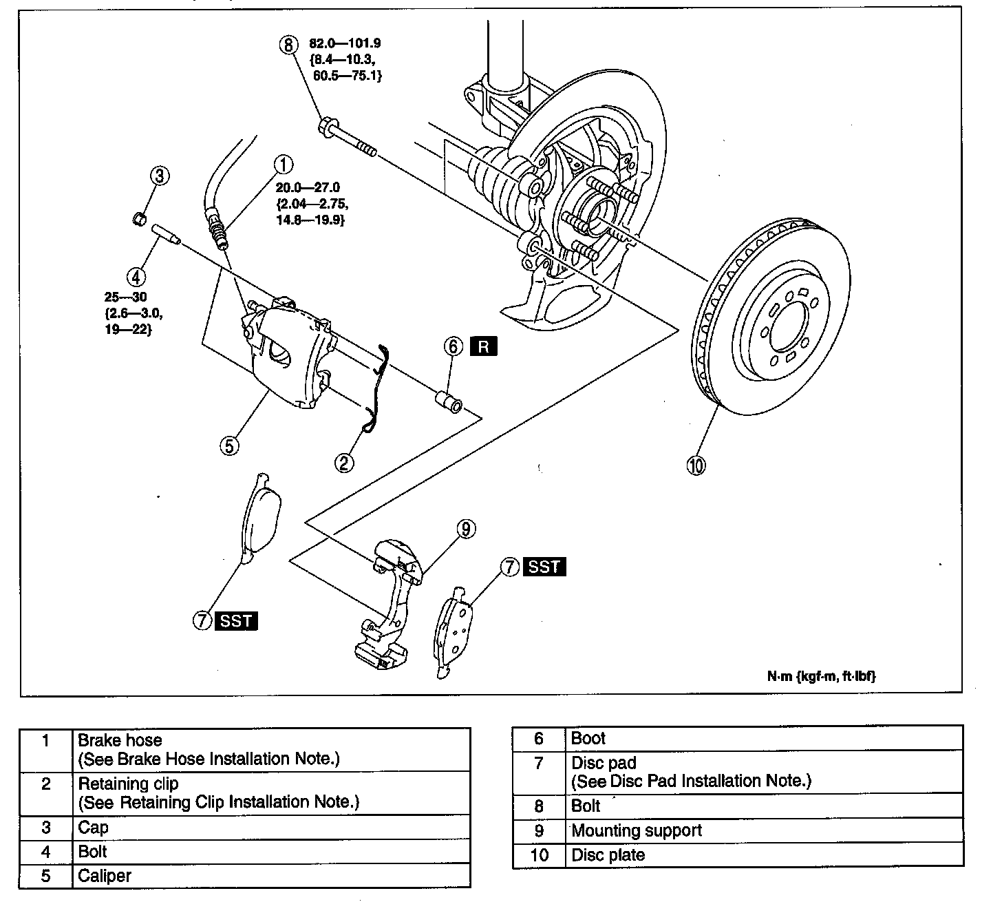 FRONT BRAKE (DISC) REMOVAL/INSTALLATION1. Remove in the order indicated in the table.