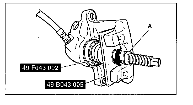 4. Rotate part A on the SST in the direction of the arrow and secure the SST to the caliper.