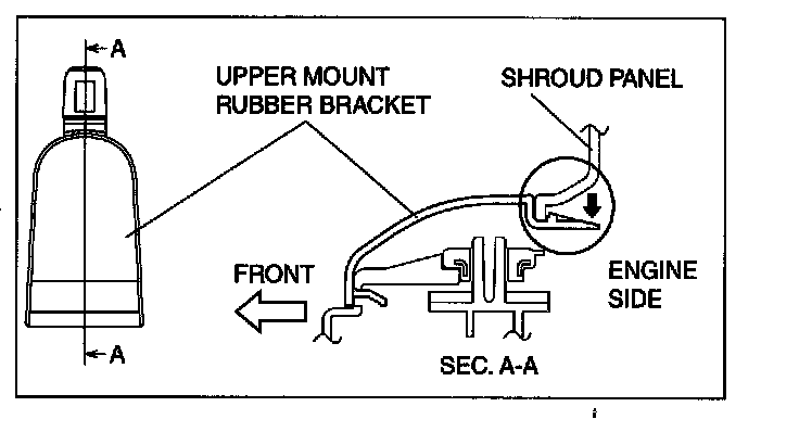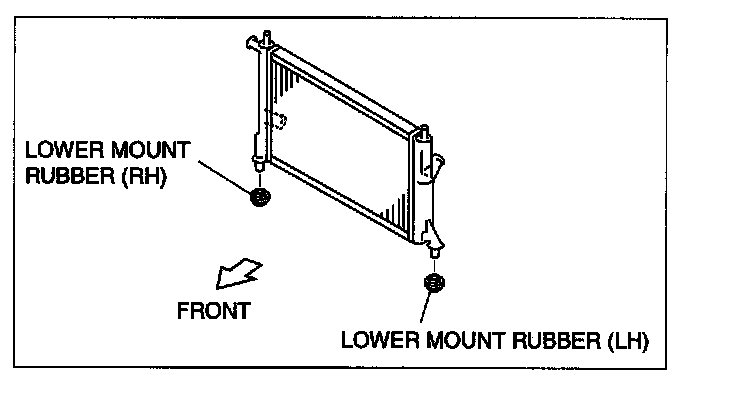 2. While lifting the radiator, remove the lower mount rubber (LH) from the mount installation hole.
