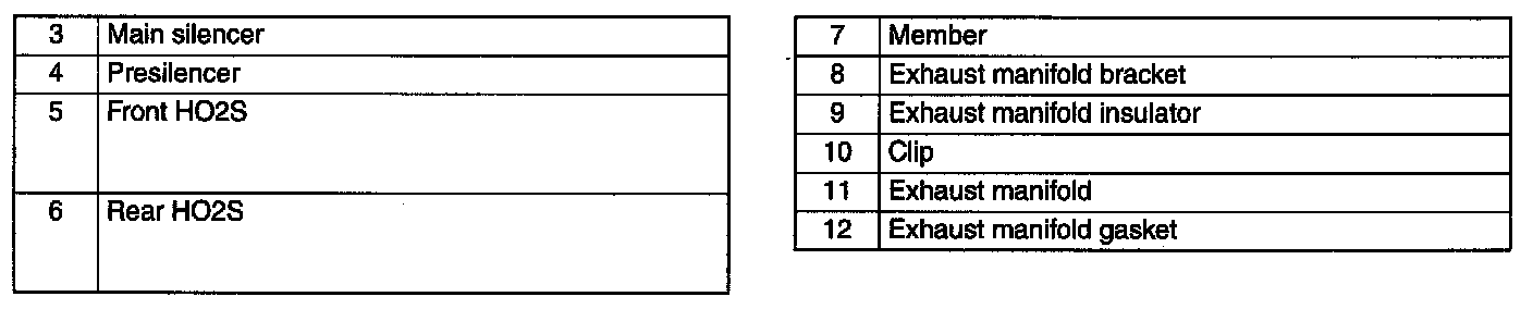 ^ A hot engine and exhaust system can cause severe burns. Turn off the engine and wait until they are cool before removing the exhaust system.