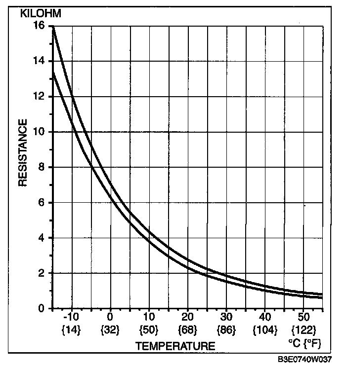 - If the characteristics of the ambient temperature sensor are not as shown in the graph, replace the ambient temperature sensor.