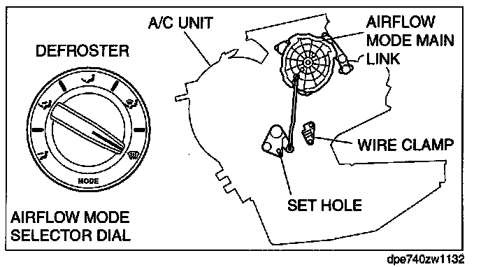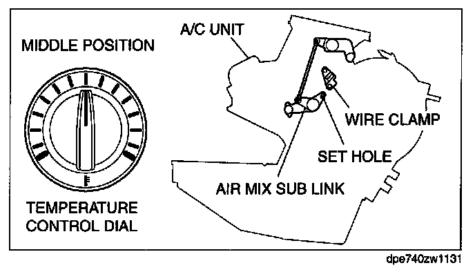 CAUTION: If the air mix wire is set without first fixing the air mix link position, it is possible that the air mix door cannot be switched normally.