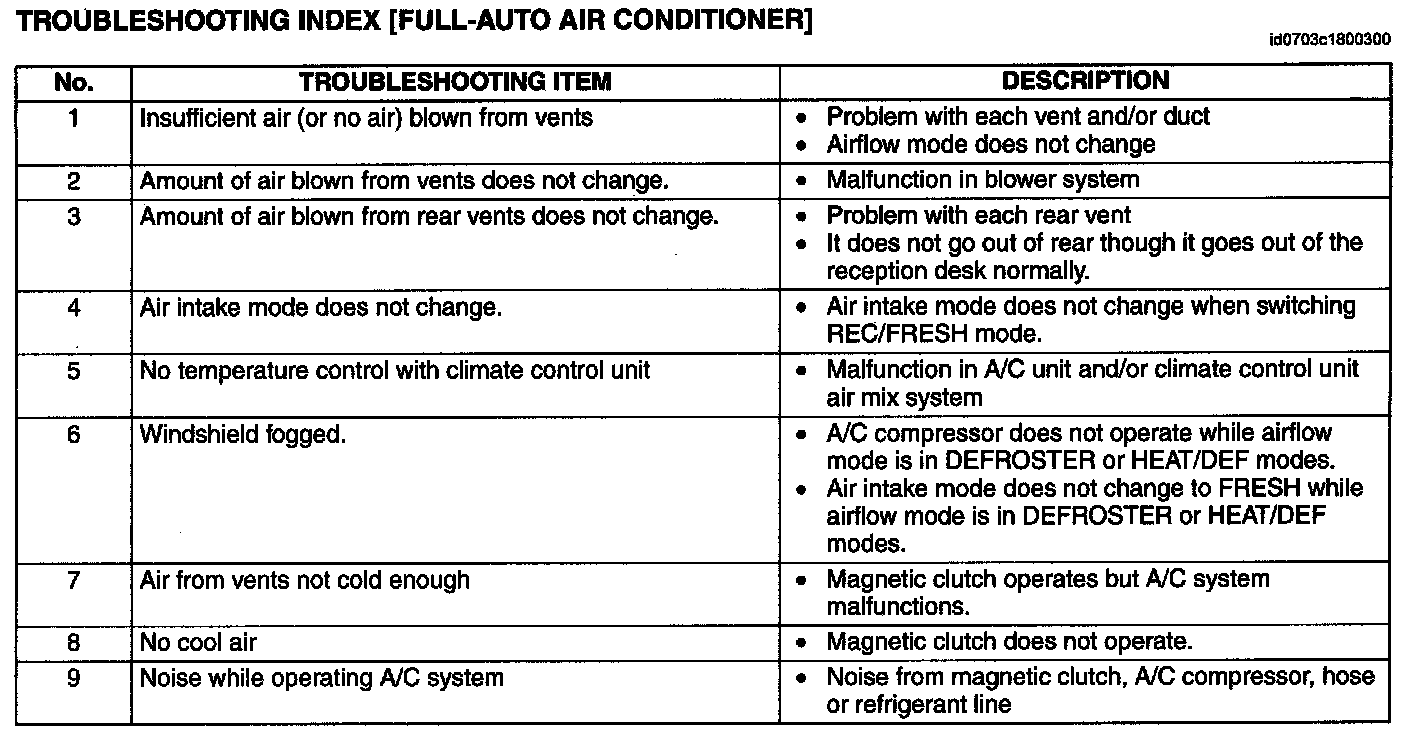 Troubleshooting Index [Full-Auto Air Conditioner]: