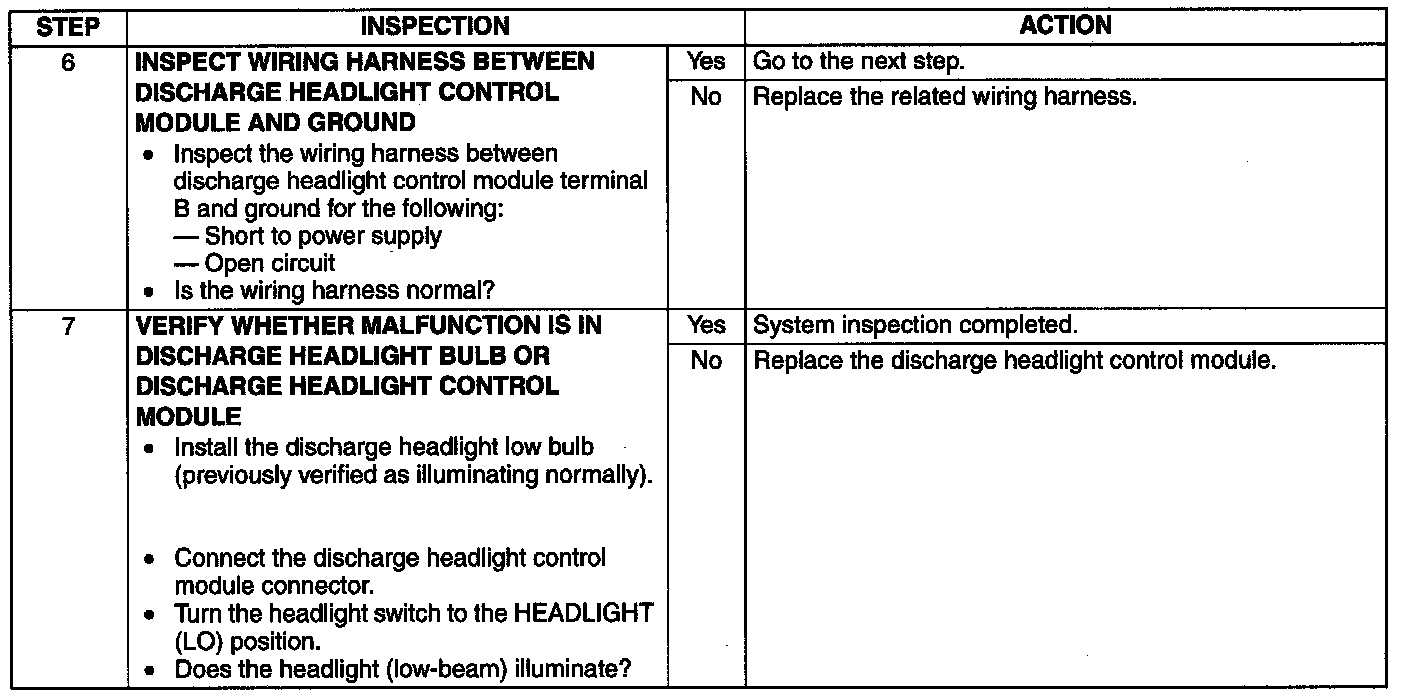 DISCHARGE HEADLIGHT SYSTEM INSPECTIONDischarge Headlight Inoperative