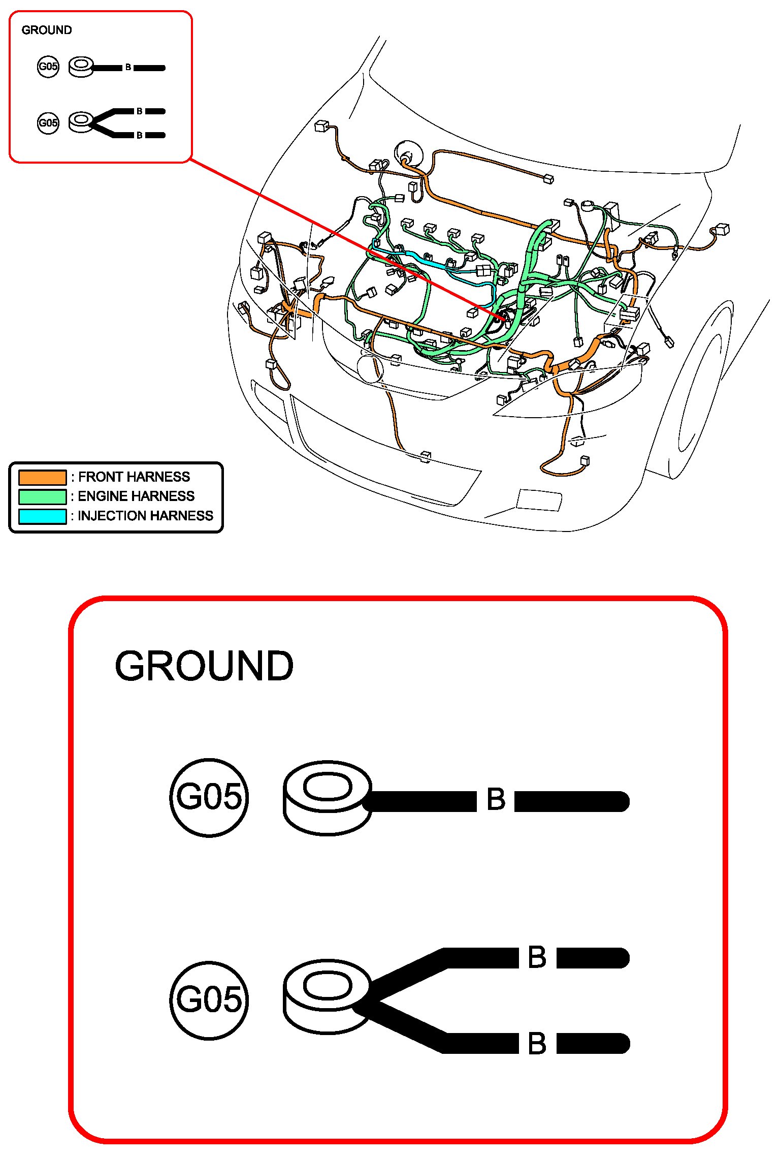 Engine Compartment Connectors/Ground Points Locations