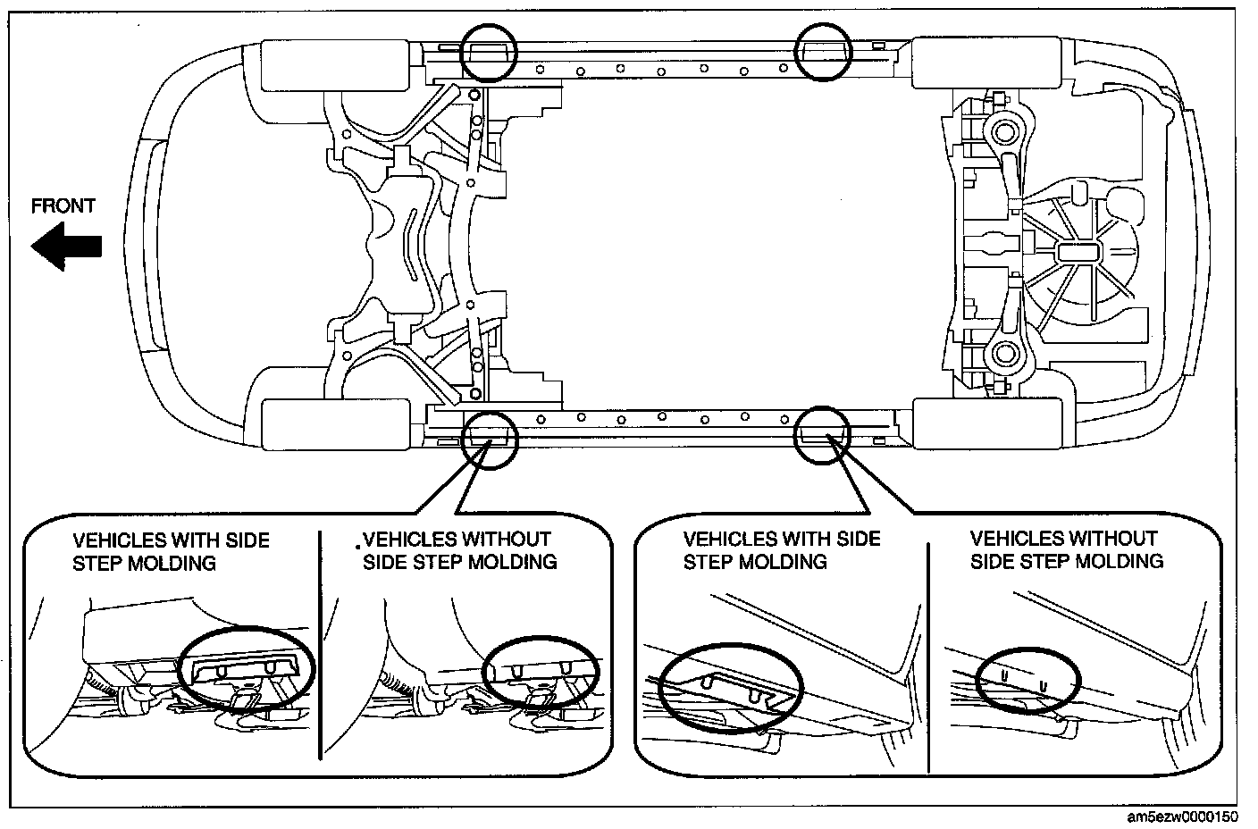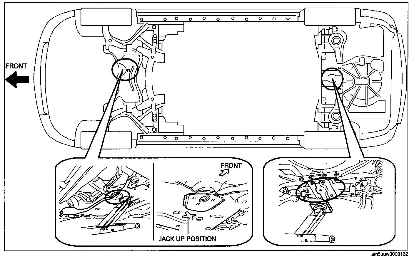 NOTE: To prevent obstruction between the jack body and front bumper when the jack body is inserted, use a low- floor type jack.