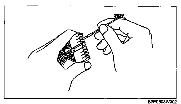 2. Insert the male terminal to the female terminal and inspect the female terminal for looseness.