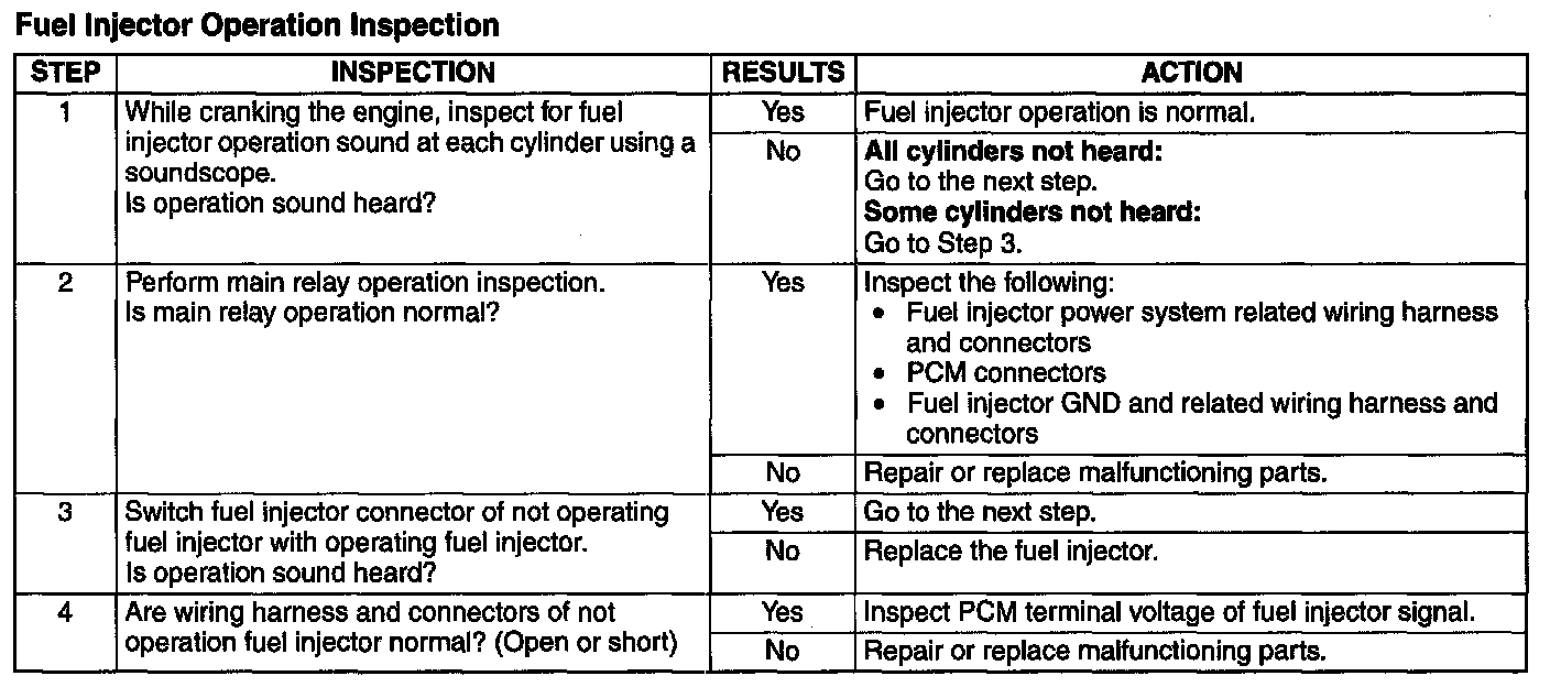 1. Crank the engine and verify that fuel pump relay operation sound is heard.