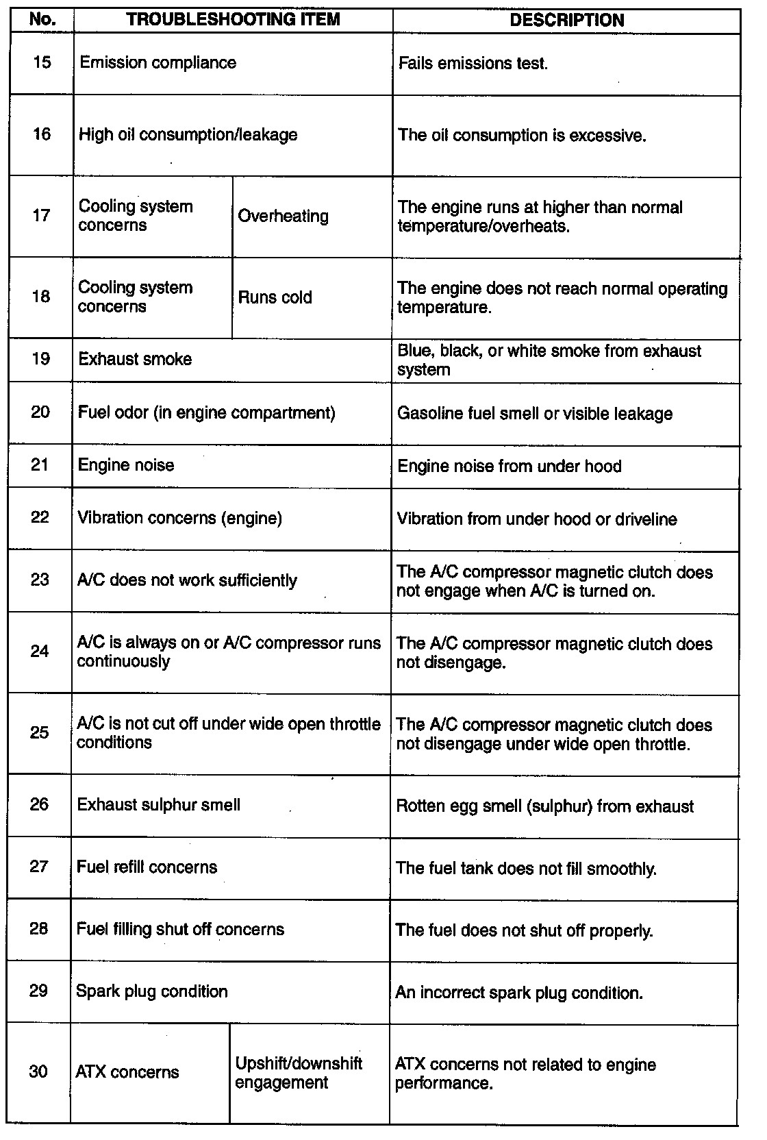 Confirm trouble symptom using the following diagnostic index, then go to appropriate troubleshooting chart.
