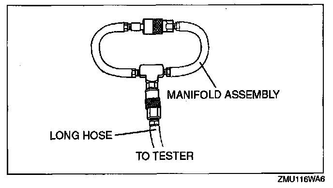 2. Connect the long hose (part of SST) to the tester.
