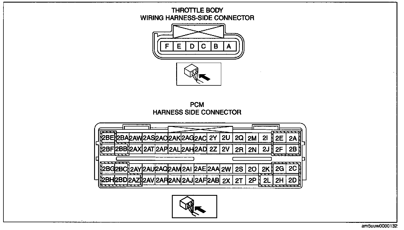 5. Verify that the TP1 or TP2 PID is within the specification when the accelerator pal not depressed. (See PCM INSPECTION [L3].) PCM Inspection