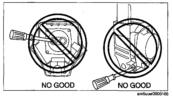 - Inserting a screwdriver or similar object into the connector of an air bag module or a pretensioner seat belt may damage the connector and cause the air bag module or the pretensioner seat belt to operate (deploy) improperly, which may cause serious injury. Never insert any foreign objects into the air bag module or seat belt connectors.